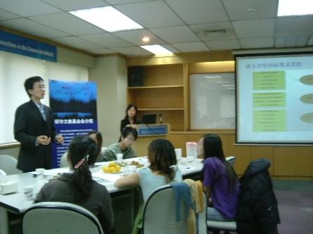 相互认识后,由研华(中国)公司总经理何春盛先生致欢迎辞,研华文教基金会执行长苏治华先生致欢迎辞,并介绍了基金会及这次参加挑战杯创业大赛的情况。同学们热烈祝贺了本次创业大赛最佳创意奖的获得者——来自台北的同学们,并对他们的创意产生浓厚的兴趣。